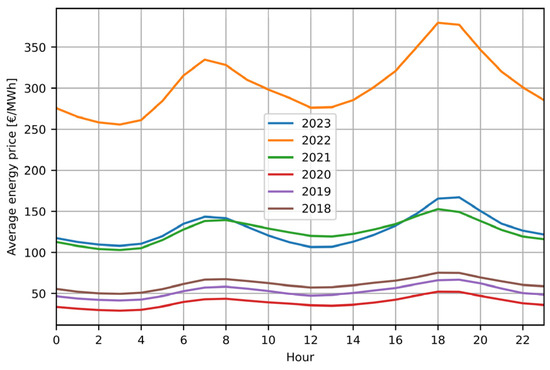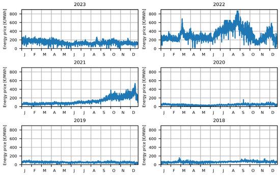 Hourly energy price in the Italian electricity market from 2018 to 2023.