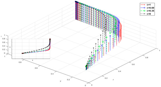 When the decision change rates of the three entities are zero, the equilibrium points of this tripartite evolutionary system can be obtained. That is, when , there exist eight pure stable strategy points, , , , , , , , and , and one mixed strategy equilibrium point, .