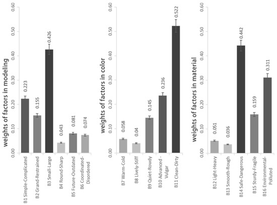 19]. Nowadays, the fuzzy AHP has been widely used in the field of product design. For example, Hsiao evaluated the color schemes of cars based on this method. He also conducted a weight analysis of the elements in bicycle exterior design, where different design schemes were then subjected to fuzzy evaluation to determine the optimal design elements [