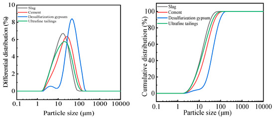 Particle size distribution of the ultrafine tailings and cementitious materials.