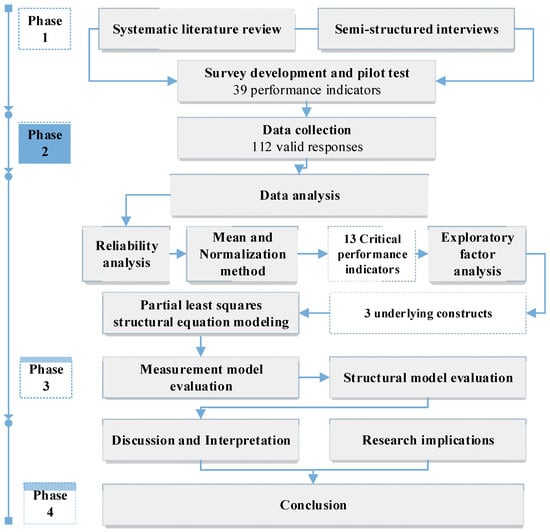 Initially, mean score ranking analysis was utilized to ascertain the relative rankings of the performance indicators. In instances where multiple indicators exhibited identical mean values, priority was accorded to those demonstrating the lowest standard deviation (SD). A lower standard deviation (SD) implies that the variations in responses are not statistically significant; thus, the reliability of the mean value as a representation for the majority of respondents is enhanced [59]. Following the ranking of performance indicators, a normalization method was applied to identify the crucial performance indicators [60]. Using this approach, the minimum mean value was standardized to 0, while the maximum mean value was standardized to 1. Subsequently, the remaining mean values were transformed into decimal values within the range of 0 to 1. The performance indicators with normalized values of 0.60 or higher were identified as critical performance indicators.