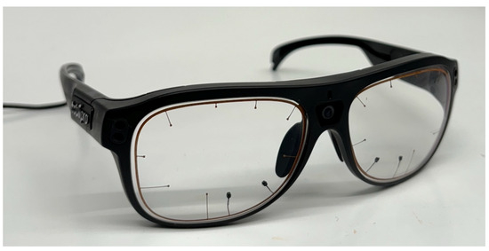 On the day of testing, participants were scheduled to visit the site of the retail lab located at Greenville, SC. Participants were given an explanation with the test instructions, along with a data collection consent form for them to review and provide their signature. Upon providing their consent for data collection, participants were then provided with a pre-survey to collect their demographic information. Once this was completed, participants were provided with a pair of eye-tracking glasses (Figure 5), and device calibration was performed by having participants wear the glasses while looking at a target at eye level on a wall from 20 to 40 inches away. Throughout this process, clear and detailed instructions were provided to participants to ensure their understanding and compliance. Additionally, any questions or concerns raised by participants were addressed promptly to maintain a comfortable and conducive testing environment.