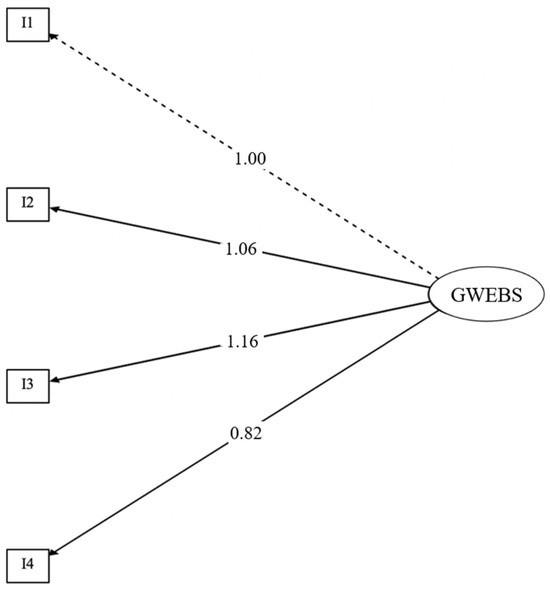 The first subsample confirmed the one-factor structure with excellent fit indices: χ2 [6] = 291.91, p < 0.001, TLI = 0.98, CFI = 0.99, RMSEA = 0.059 (90% CI [0.00, 0.20]), SMRS = 0.01. A similar fit was found in the second subsample: χ2 [6] = 364.43, p < 0.001, TLI = 0.98, CFI = 0.99, RMSEA = 0.069 (90% CI [0.00, 0.20]), SMRS = 0.01. These results support H1. Further validation was carried out using the entire sample, yielding excellent fit [71]: χ2 [6] = 643.86, p < 0.001, TLI = 0.98, CFI = 0.99, RMSEA = 0.061 (90% CI [0.00, 0.16]), SMRS = 0.01. The internal consistency of the factor was also excellent, with the reliability indices presented in Table 3. All computed metrics (i.e., composite reliability, average variance extracted (AVE), square root of AVE, mean, and standard deviation) fell within the reference range (see Table 3 and Figure 1).