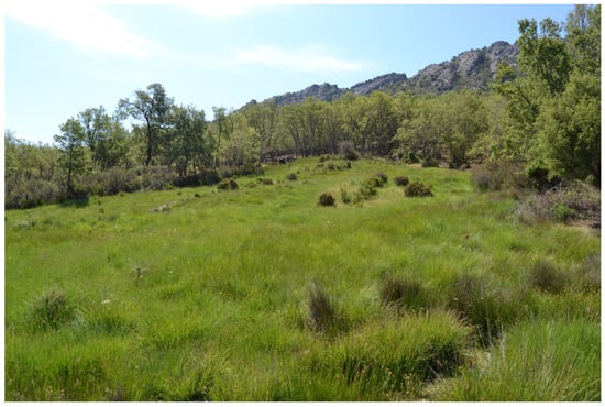 As a consequence of the different ecosystem services they provide, the diversity of plant associations or communities in each phytosociological group, their distribution, and their agricultural and livestock uses, as well as the conservation status of these associations, these grasslands were chosen for study. These are grasslands of interest for extensive and tabulated livestock farming due to their nutritional value [25,26,27,28,29,30,31] because they have a floristic composition rich in grasses and legumes.