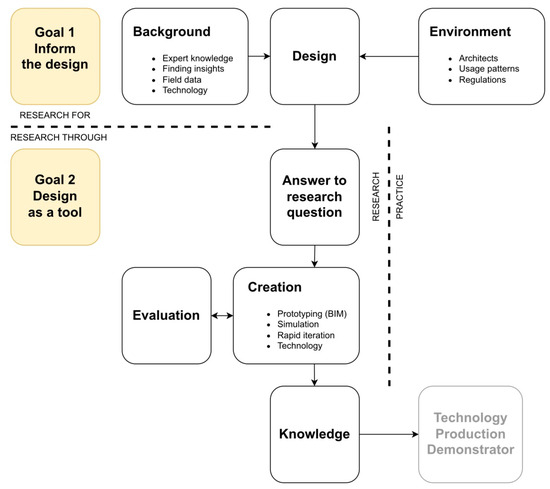 A complex set of methodologies, suitable for different stages of the R&D activities, was introduced (Figure 1). Initially, the strategy was to ‘inform the design’: gather knowledge and background information and pose research questions. The informing part aimed also to identify the qualities of collective senior housing projects that were important from the point of view of volumetric prefabrication. The authors used a wide range of research techniques. These include: