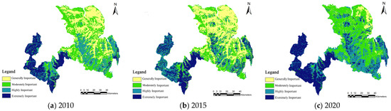 Importance zoning of ESs in Ruoergai National Park from 2010 to 2020.