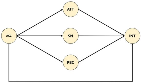 Research model. Note. Variable labels are as follows: ACC = awareness of climate change, ATT = attitudes, SN = subjective norm, PBC = perceived behavioral control, and INT = behavioral intention.