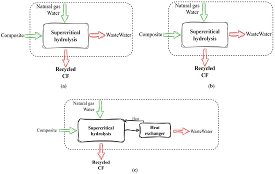 - Pillain, B.; Loubet, P.; Pestalozzi, F.; Woidasky, J.; Erriguible, A.; Aymonier, C.; Sonnemann, G. Positioning Supercritical Solvolysis among Innovative Recycling and Current Waste Management Scenarios for Carbon Fiber Reinforced Plastics Thanks to Comparative Life Cycle Assessment. J. Supercrit. Fluids 2019, 154, 104607. [Google Scholar] [CrossRef]