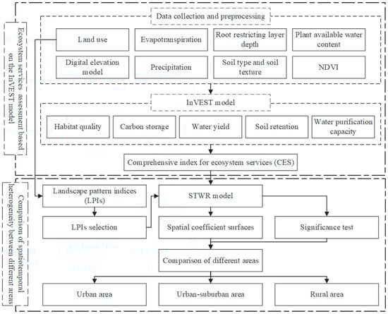 Empirical studies demonstrated that our framework is effective in real-world applications. In addition to exploring the characteristics of changes along the urban–rural gradient, our framework also provides more refined spatiotemporal heterogeneity, helping to explore local spatiotemporal patterns between landscape patterns and ecosystem services in critical urban–suburban areas: