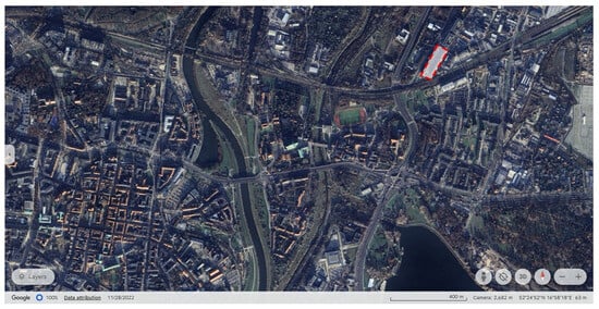 Location of the housing district at Zawady, Poznań (red frame). Map source: Google Earth [76].
