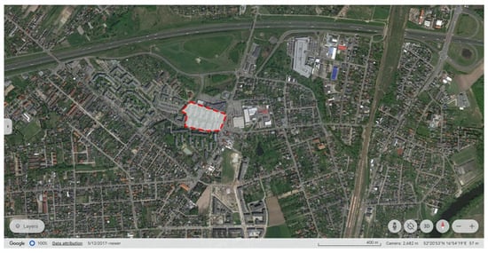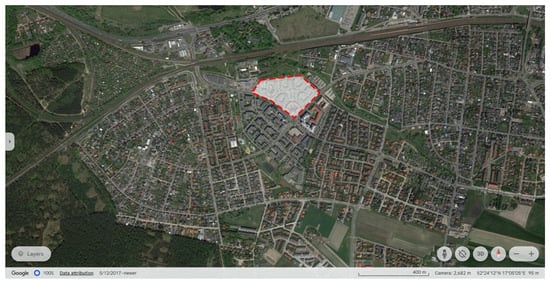 Location of the Cegielskiego housing district in Swarzędz (red frame). Map source: Google Earth [76].