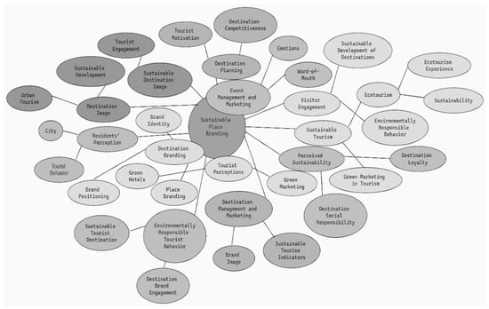 The keyword map explores the multifaceted domain of sustainable place branding, articulating a framework that weaves together strategic, perceptual, emotive, and operational dimensions vital to the enduring health of tourist destinations (Figure 6).
