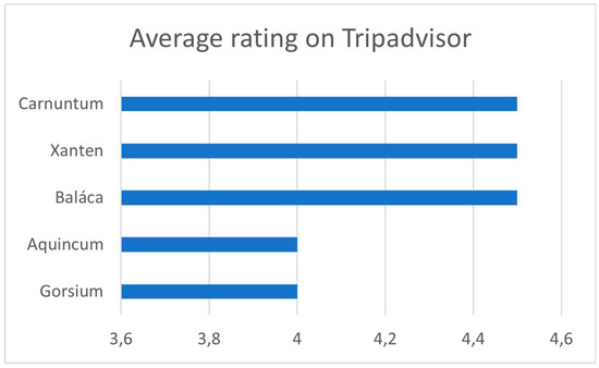 Looking at the visitor ratings, all the archaeological parks received a rating of at least 4, which is a very good result. It is interesting to note that although Villa Baláca is the smallest of the Hungarian parks surveyed, it received ratings comparable to its international peers, as shown in Figure 1.