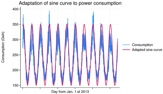 The consumption of electricity modeled as a sine curve with a trendfactor of zero.