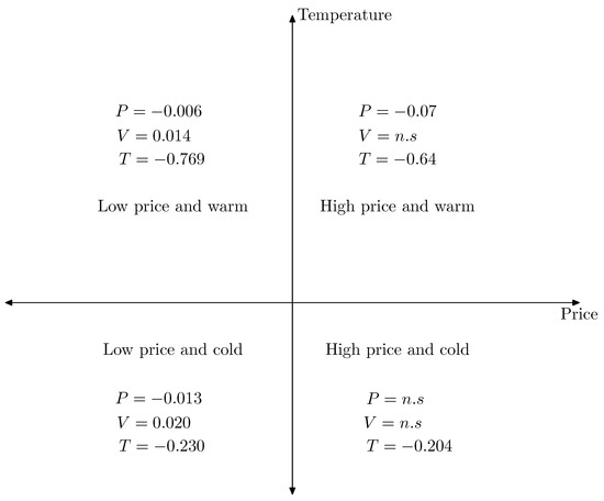 - Low price and warm: P < 1500 and T > 0. Result: See Figure 16, northwest quadrant;
