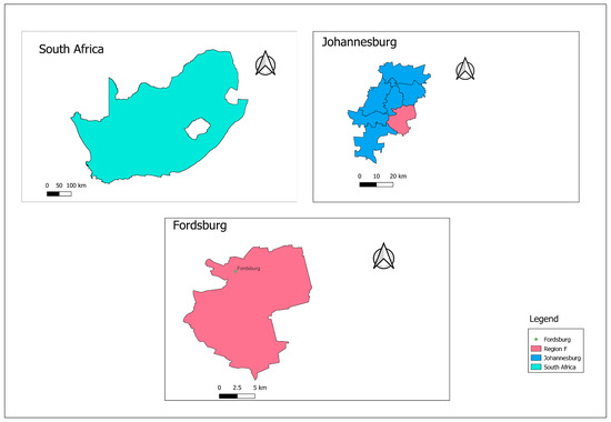 The study was conducted in the Fordsburg flea market in Johannesburg, South Africa. Fordsburg is in Region F of the City of Johannesburg Metropolitan Municipality administration within Gauteng province. A map and the geographic location of Fordsburg within the City of Johannesburg Municipality region are shown in Figure 1.