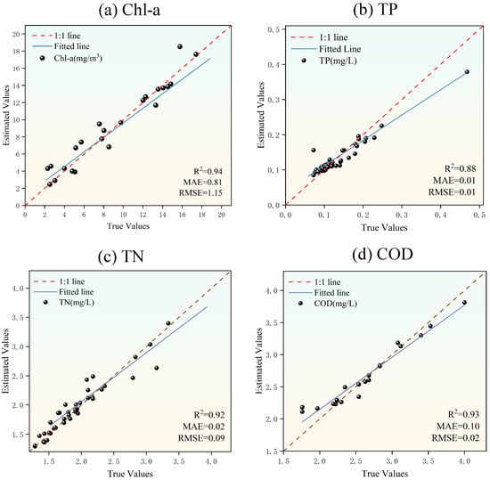 Performances of models for water quality parameters (Chl-a, TP, TN, and COD).