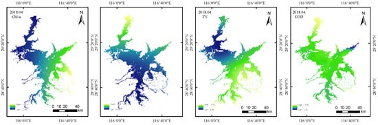 Average Chl-a, TP, TN, and COD concentrations retrieved by the STE model between 2017 and 2018.