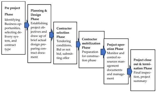 The government is responsible for the budget allocated for infrastructural development [1,2,3], and several projects have been delayed, resulting in increased costs beyond the initial estimates [4,5]. This issue is commonly witnessed in traditional contract arrangements, typically awarded to the lowest bidder [3,4]. However, the procurement strategy has been adopted by most developing countries [3,5]. For example, Latham [6] focused on the timely delivery of a project, which is essential in the construction industry, where projects often last longer than planned [1,4,5,7,8].