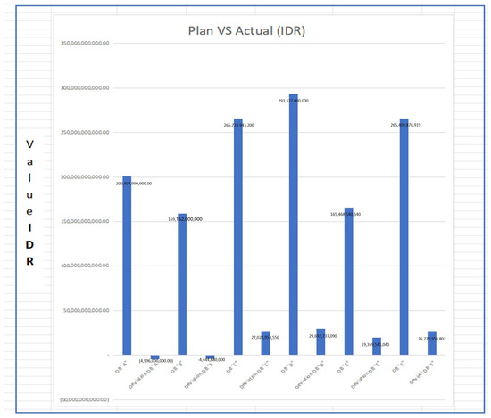 In Figure 3, DB projects A and B experienced delays in completion due to COVID-19, affecting the project productivity and increasing overhead costs. However, lean construction helped prevent higher deficits, showing controlled milestone schedules and innovative work methods across all six projects. This innovation is precious for large-scale DB projects exceeding IDR 100 billion, ensuring efficiency and maximizing benefits. In addition, Figure 4 shows that DB A and B experienced losses in planning and actual project value.