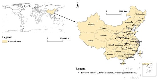 As an important system for cultural heritage management and a tool for sustainable urban development, archaeological site parks have received extensive attention from scholars and policy makers. Mainly focusing on the theoretical construction of archaeological site parks [21], scientific planning [22], archaeological work [23], and environmental remediation [24], qualitative research conducted by Chinese scholars has laid the foundations for the research and construction of the National Archaeological Site Parks. The Salalah Guidelines [25], promulgated by the International Council on Monuments and Sites in 2015, recommends the inclusion of “archaeological site parks” in the official terminology of the international cultural heritage field, and their implementation as a tool capable of organically linking site protection efforts, scientific research, and the public. Most scholars tend to choose National Archaeological Site Parks comprising representative and well-developed areas to conduct research on the display methods [26], management and operation [27], evaluation systems [28], heritage tourism development [29], spatial development models [30], etc., of these sites. Significant research results have been obtained regarding the protection and utilization of heritage in the context of archaeological site parks. The Salalah Guidelines for the Management of Public Archaeological Sites were officially adopted at the 19th General Assembly of the International Council on Monuments and Sites in 2017. These important guidelines provide specific guidance for the sustainable management of archaeological sites [31], and also promote the development of archaeological site parks in the international community. The international community’s research on archaeological site parks has shifted from emphasizing material protection to embodying the human dimension in management practices [32] and has gradually started to focus on the broader local social value of archaeological site parks [33] and their contributions to the Sustainable Development Goals [34]. Some common findings of previous studies are of reference value for this research. These findings share the view that the construction of China’s National Archaeological Site Parks involves various issues such as cultural heritage preservation, urban and rural construction, tourism development, and so on. Attention has been paid to the relationship between archaeological site parks, urban renewal, and the regional society. Despite China’s long history of curating relics, the implementation of an institutional system responsible for the protection and exhibition of archaeological heritage is a relatively recent phenomenon in the Chinese cultural landscape. Previous studies have primarily analyzed National Archaeological Site Parks from the perspectives of archaeology, history, and management [26,28,30], mostly focusing on specific regions or specific archaeological site parks and adopting a single analytical method [26,33,34]. Research providing a systematic observation and macroscopic understanding of National Archaeological Site Parks from a geographical perspective is rare. This lack of systematic and complete studies of the spatial–temporal evolution, distributional management system characteristics, and influencing mechanisms of the National Archaeological Site Park management system on a large scale is a weakness of the existing literature.