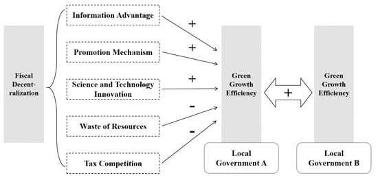 As mentioned by previous research, fiscal decentralization may both promote and inhibit green growth efficiency. This research examines the impact of fiscal decentralization on the efficiency of green growth by analyzing its mechanisms and regional spillover effects. Hypotheses are subsequently suggested.