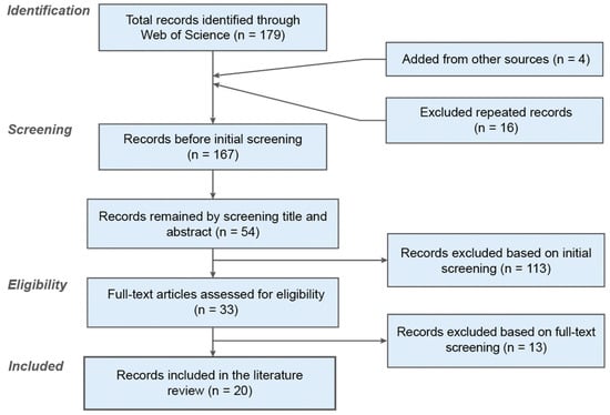 - Munn, Z.; Peters, M.D.J.; Stern, C.; Tufanaru, C.; McArthur, A.; Aromataris, E. Systematic Review or Scoping Review? Guidance for Authors When Choosing between a Systematic or Scoping Review Approach. BMC Med. Res. Methodol. 2018, 18, 143. [Google Scholar] [CrossRef]
