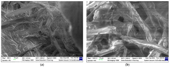 The magnitude of 1000× was chosen to analyze the composites structure, being correlated to the theoretical dimension of cellulose-derived fibers from the milling process.