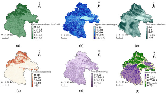 - Several ecosystem services, such as carbon sequestration, oxygen release, water conservation, soil conservation, and habitat quality, exhibit similar spatial distribution patterns. This can be attributed to natural topography and vegetation cover.