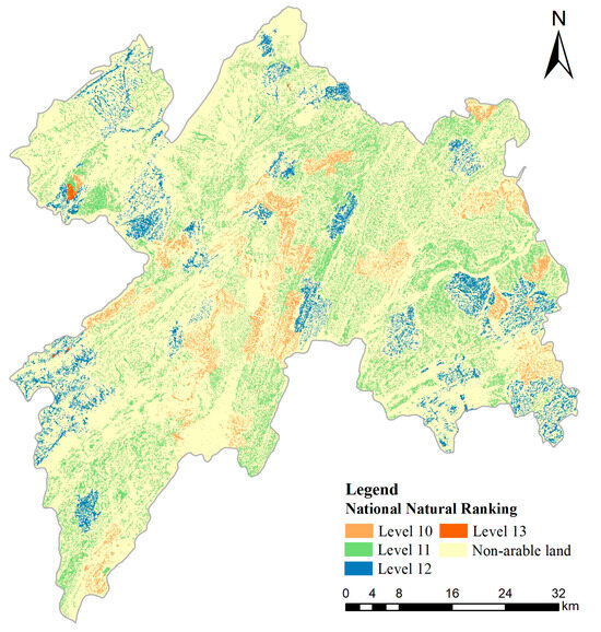 National natural grade evaluation results of cultivated land in Enshi obtained by the proposed method.