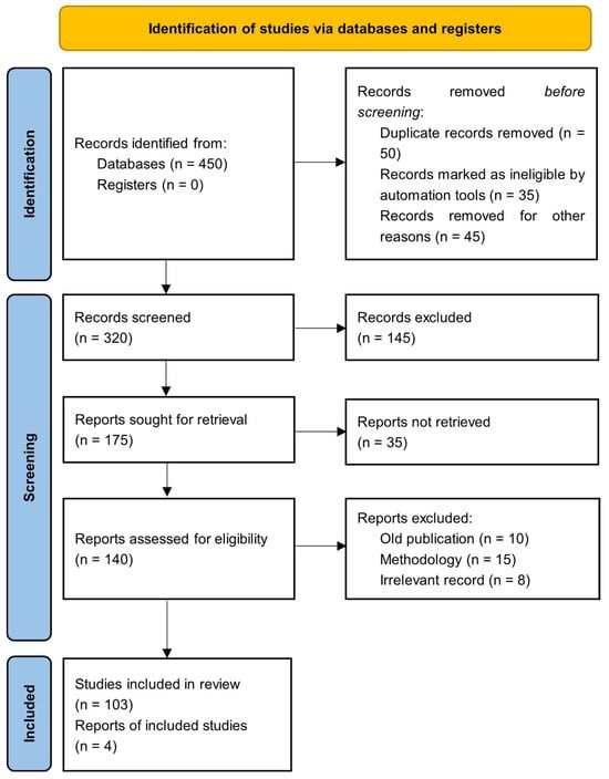 - Page, M.J.; McKenzie, J.E.; Bossuyt, P.M.; Boutron, I.; Hoffmann, T.C.; Mulrow, C.D.; Shamseer, L.; Tetzlaff, J.M.; Akl, E.A.; Brennan, S.E.; et al. The PRISMA 2020 statement: An updated guideline for reporting systematic reviews. BMJ 2021, 372, n71. [Google Scholar] [CrossRef]