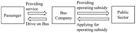 In a bus operation, a bus company operates a specific bus route for the public (passengers) to take. Passengers can pay their fares in cash, or through electronic ticketing systems developed by the bus companies and the government, in which passengers swipe smartcards (such as the iPASS or EasyCard) when they board. Such card payments are a part of a collaboration with the county and city governments [13]. The bus companies’ main source of income is the bus fares paid by passengers in cash or through cards. However, since operating costs are often higher than their income, bus companies may seek operating subsidies from the public sector for them to continue their services. When the public sector receives a bus company’s request for subsidies, they seek an appropriate legal basis for budget planning and publicly announce the justification for the subsidy application, along with the subsidy measures. Afterward, when the public sector receives a company’s application for subsidies, they perform evaluations according to a loss subsidy, cost subsidy, and performance subsidy [14]. After reviewing the application, the operating subsidy will be given to the bus company for them to continue their services. With assistance from the public sector, bus companies can then provide services in a sustainable manner, realizing the public’s need to continuously use public transportation, as well as enhancing the protection and sustainability of the environment.