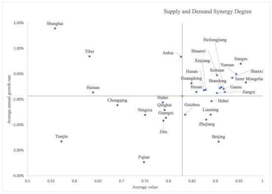 Spatial–temporal distribution of supply–demand synergy and supply–demand synergistic development.