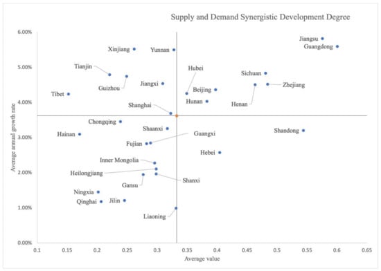 Average level and annual growth rate of supply–demand synergistic development in the health industry.