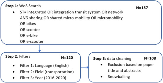 In addition, this study utilized a logical combination of search terms, including both journal and grey literature, restricted to the transportation research category. It covered the years from 2016 to 2022, focusing on English-written references. After manual data cleaning, 108 unique items were identified and analyzed. The authors can provide a full list of the 108 papers upon request.