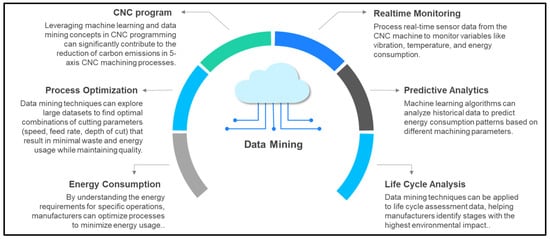 Calculating and forecasting energy consumption is very important, especially for the CNC machining process [11,12,13]. It has become obvious that power consumption changes depending on the toolpath as the number of axes on machine tools has risen and the motion of machines has become more sophisticated. Unique milling circumstances of a machining operation, such as the spindle motor speed and feed rate, as well as its predicted electrical energy consumption and the maximum electrical power in watts during the operation duration, are referred to as the processing mode. Researchers have also tackled a conceptual issue by creating an energy-load profile with the goal of reducing the profile length, and they have talked about how their method may be used as the foundation for green manufacturing processes. We provide a theoretical framework, mostly using machine learning tools, for processes that are energy-efficient in a five-axis machine. On the basis of actual machining data, our system employs energy-load profiles and the processing modes of machine tools.