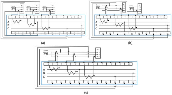 Wiring diagram for (a) X-, Y-, Z-axis motor, (b) A- and C-axis motor, (c) spindle motor.