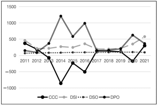 According to the existing literature, there are currently two methods to measure supply chain finance. The first method, used by Wangxin Y., et al. (2017) [32], measures supply chain finance by calculating the ratio of short-term borrowings and notes payable to total assets. The second method, used by Zhang T. (2019) [4], Cho W. (2019) [21], and Pirttilä M. (2020) [33], et al., uses the CCC as a proxy variable to measure the relationship between supply chain finance and firm financial performance. Based on the development of commercial credit and trade credit theories, existing theories and practices have shown the close relationship between supply chain finance and the inventories, accounts receivable, accounts payable, and cash flow management of enterprises. The computation of the CCC is determined by aggregating the DSO and the days sales of inventory (DSI) and then subtracting the DPO. It represents the enterprise’s need for short-term debt financing and is an important factor in studying the internal financing of enterprises [34]. Considering that enterprise financialization focuses on financial management, it is reasonable to use the CCC as a proxy variable to measure the relationship between supply chain finance and enterprise financialization. To standardize the data, this paper defines that: the degree of supply chain finance development (Scf) = 1 − CCC/the turnover days of total assets. This means that the lower the proportion of the CCC to the turnover days of total assets, the higher the degree of supply chain finance development.