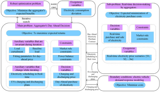 The rest of this article is arranged as follows. Section 2 describes the EVA operating model and pricing problems. The electric vehicle demand response model is given in Section 3. A two-stage robust optimization model is developed in Section 4. Section 5 is the solution method for the model. Section 6 presents the simulation and analysis. Section 7 concludes the paper and highlights future work.