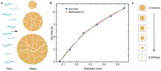 By comparing the simulated trends of individual particles with different diameters to the results obtained from our experimental tests, we observed a consistent pattern. In both cases, as the diameter of the resin particles decreased, the transition time from wet to dry conditions shortened. In the experiments (as shown in Figure 4c), the trend was not as pronounced for smaller diameters. We attribute this to the macroscopic effects of the combined action of several resin particles in the actual tests. It is possible that when multiple resin particles are arranged together, the airflow rate is constant, and thus the transition from wet to dry conditions does not occur simultaneously for all particles. In contrast, the simulation is a microscopic analysis focusing on individual particles. However, the overall trend aligns, indicating that our experimental results are consistent with theoretical simulations.