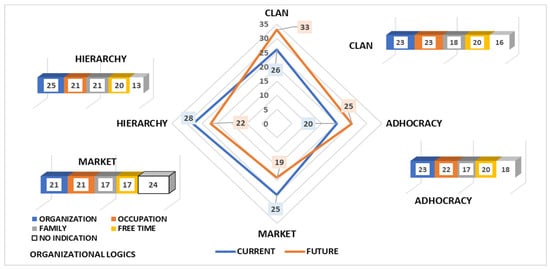 The research demonstrates the assumed and unchanged institutional order as the order of strength and significance of individual logics is the same in every organisational culture type. The logic of occupation is the determinant, as it continues to be the core of both types of cultures. It is followed by the logic of organisation, which—in the desired type of culture—is supplemented with the increased significance of the logic of family. In scope of the logics, employees want to be sure that working from home will be efficient despite having to abandon “market intensification” instruments such as lean, high-performance practices (HPWS), high engagement practices (HPWI), etc.