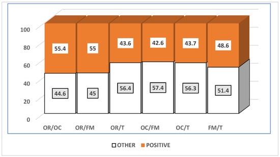 According to the presented results (Figure 2), over 50% of positive relations in establishment of home offices comes from substantive logics (organisation and occupation—OR/OC) and the logics of organisation and family (social context—OR/FM). The positive coexistence of social logics (family and free time—FM/T) appears almost half of the time. The remaining relations of substantive logics with free time and the logics of occupation and family demonstrate more turbulence as they impede, exclude, or fail to support fulfilment of the presented confronted logic values. The relations between the key occupation logic and the logic of family (OC/FM) as well as the logic of free time (OC/T) specifically demonstrate that introduction of home offices for the long run may produce changes irrespective of opposite logic (27.2% for family and 25.1% for free time) or are ambivalent towards it (30.2% for family and 31.2 for free time). Meanwhile, the relations between organisational logic and the logic of free time demonstrate a high—35.8%—level of expected exclusion of the value of free time and only 20.6% independence between the two types of logic in question. This means that adaptability to changes is declared by only one in five employees, which indicates a low level of psychological readiness for and maturity toward changes. Employees see 22% more differentiations and various forms of logic disturbances in professional activity and home office evaluations than positive co-occurrence. However, it should be noted that in relation to the base logic of occupation and the logic of family-substantive logic, i.e., the logic of organising work from home, this demonstrates high values of cooperation and complementarity factors (38% for OR/OC and 32% for OR/FM) and indicates potential autonomy in 17.4% for occupation and 23% for family.