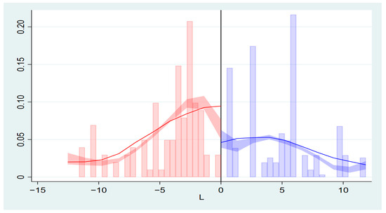 - Cattaneo, M.D.; Jansson, M.; Ma, X. Manipulation testing based on density discontinuity. Stata J. Promot. Commun. Stat. Stata 2018, 18, 234–261. [Google Scholar] [CrossRef]