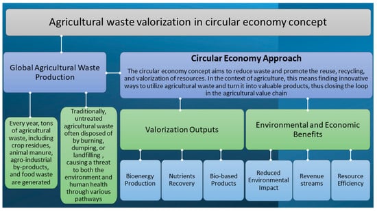 The world’s population growth has heightened our awareness of the limitations of the available resources, prompting a focus on their effective utilization [1]. Agricultural waste and the concept of the circular economy are interconnected, both being central to promoting sustainability within the agricultural sector. The circular economy represents an economic model aimed at minimizing waste and maximizing resource utilization through the promotion of recycling, reuse, and regeneration [2]. This system ensures that the waste from one process becomes a resource for others, eliminating the concept of waste itself [3].