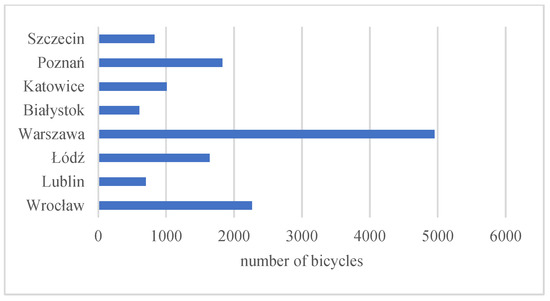 The number of bicycles available in selected cities across Poland is presented in Figure 2.