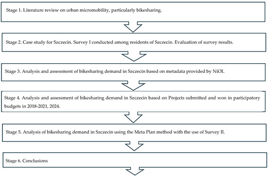 The research discussed in the article exhibits characteristics of both quantitative and qualitative research. The quantitative aspect pertains to identifying the level of interest in bikesharing in Poland, particularly in Szczecin. The qualitative research focuses on determining the social involvement in the expansion of cycling infrastructure and the weaknesses of bikesharing in Szczecin, along with its directions for development. Conducting research using both quantitative and qualitative methods allows it to be treated as a form of methodological triangulation.
