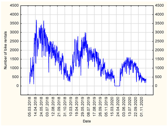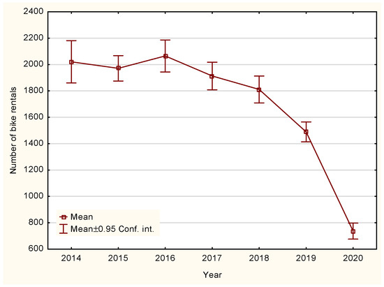 In the third stage, an analysis of bikesharing in Szczecin was conducted for the years 2018–2020 based on data provided by the NiOL company. The level of bike rentals was evaluated using variance tests.