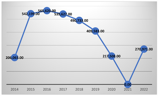 The number of submitted citizens’ projects in Szczecin in editions from 2014 to 2024. Source: Own elaboration based on [68] (accessed: 28 January 2024).