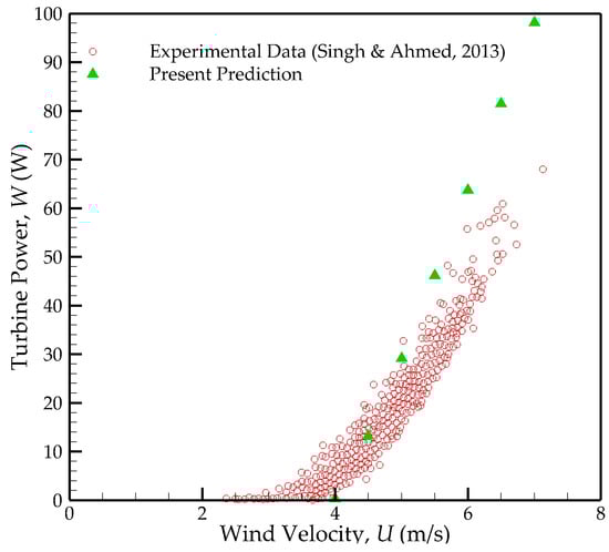 Comparisons of the simulated turbine power with the experimental data for BWT [72].