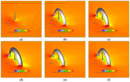 Aeroacoustic noise assessment for DAWTs was conducted numerically by Hashem et al. [38], work in which the Ffowcs-Williams–Hawkings (FW-H) equation and its integral solution were used to predict the noise radiating to the far field. The results indicated that the sound pressure level increases with increasing flange height, and a diffuser’s shape with a cycloid curve was recommended for less noise generation, a determination which was suggested to be computationally optimized by a genetic algorithm (GA) to reduce the noise emitted by small-scale application of DAWTs, making them more suitable for residential areas. It is worth mentioning that this study compared the noise emitted from the wind turbine with and without the diffuser and revealed that the DAWT generates higher noise intensity, a finding which is not consistent with the findings of other studies [11,25]. Lattice-Boltzmann Very-Large-Eddy Simulations (LB-VLES) were implemented for the solution of the flow field and the FW-H acoustic analogy was used for the far-field noise by Avallone et al. [39] to investigate the effects of varying tip clearance ratios on the aeroacoustics of a DAWT. They found that it strongly affects the far-field noise, which increases in smaller tip clearance ratio cases due to earlier flow separation along the suction side of the diffuser.
